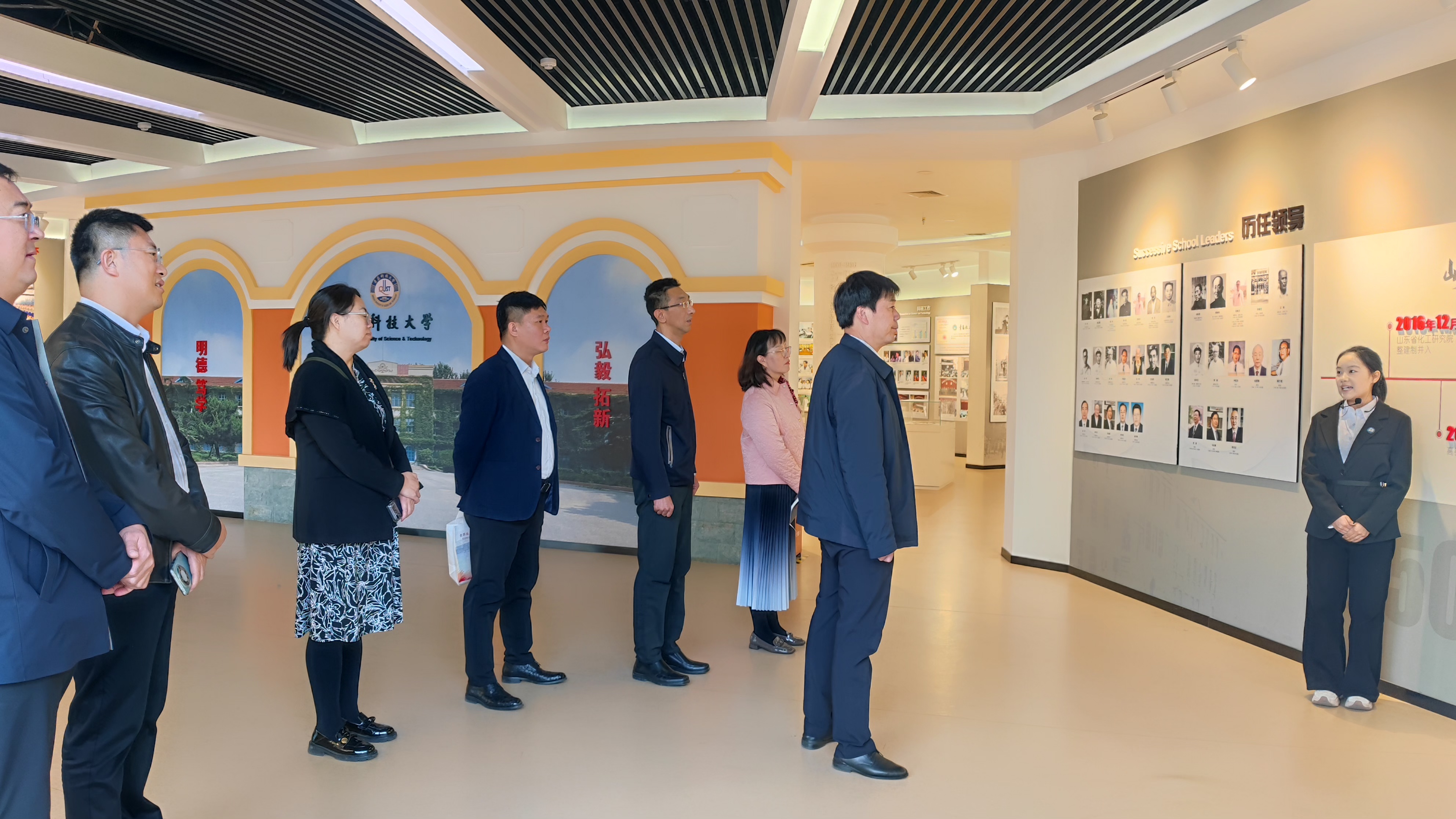 10月22日,即墨科技局书记、局长吕思龙一行参观校史馆。讲解员:王垚